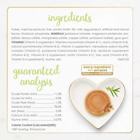 A delightfully smooth paté with tantalizing turkey, specially formulated for your kitten.IngredientsTurkey, liver, meat by-products, poultry broth,...